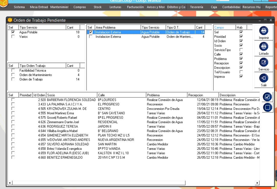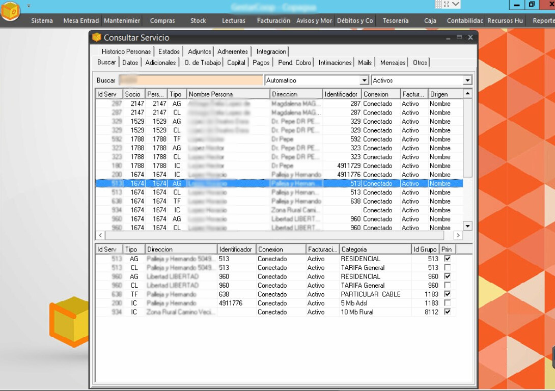Gestarcoop dispone de un modulo general, donde podrá controlar todos los datos referidos al servicio de su asociado, datos fiscales, direcciones, estados del servicio, reclamos, intimaciones, lecturas, entre otros. Como tambien la cuenta corriente con todos los comprobantes, detalles de pagos, saldos a favor, facturas impagas, detalles de la composición de cada factura, asientos contables generados y mas, imprimir facturas, enviarlas directo por correo electrónico o exportarlas a pdf y emitir informes de deuda. Todo en un solo modulo, donde podrá buscar a sus asociados por nombre, apellido, documento, dirección, etc.