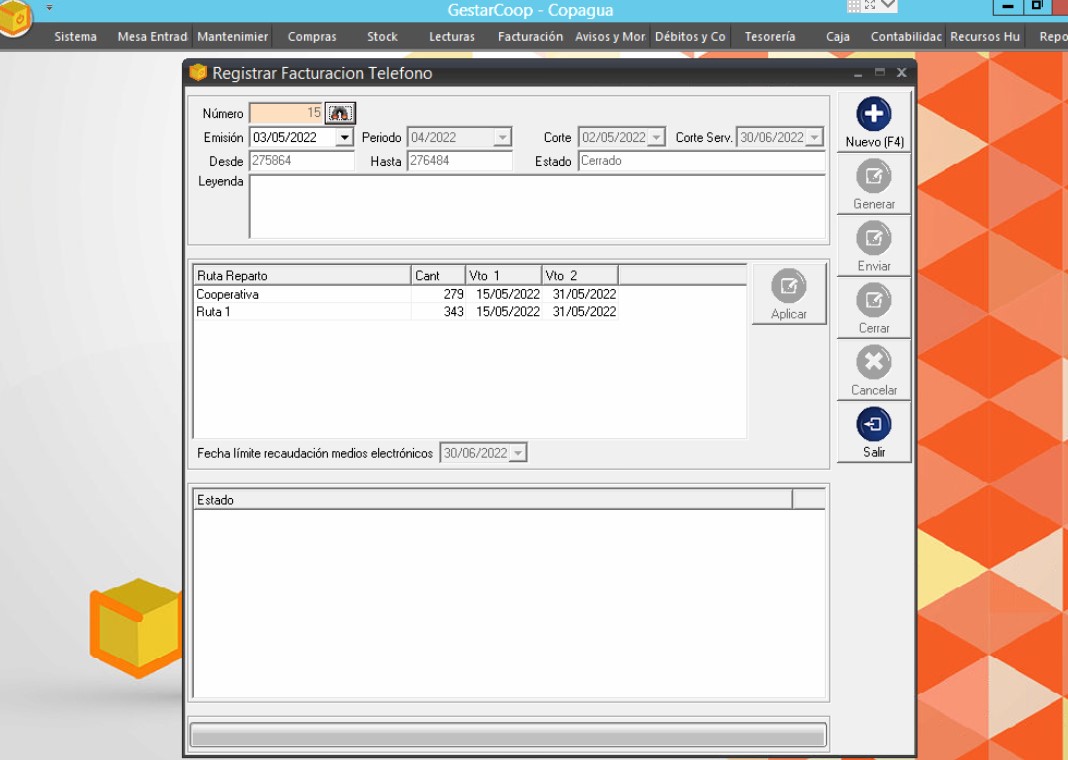 El sistema de Gestarcoop cuenta con módulos de Facturación Masiva adaptados a cada tipo de servicio, diseñado para manejar grandes volúmenes de clientes de manera eficiente. Este módulo permite generar, procesar y emitir facturas en un solo proceso, ahorrando tiempo y evitando errores manuales. Gracias a su escalabilidad, se adapta tanto a cooperativas pequeñas como a grandes organizaciones, multiples vencimientos y a complejos cuadros tarifarios, brindando soluciones personalizadas y reportes detallados que facilitan el control financiero y la toma de decisiones estratégicas.